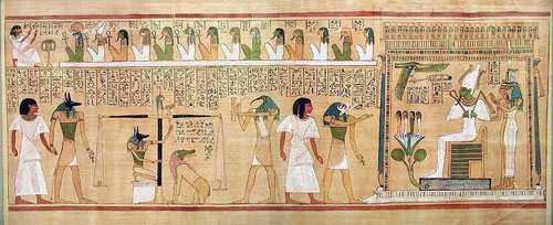 Juicio de Osiris. Pintura y escritura jeroglífica egipcias