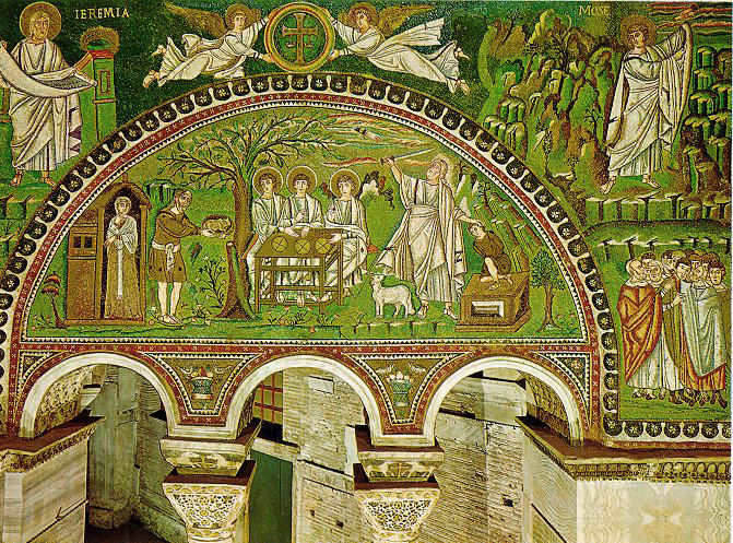 Durante esta primera época del arte bizantino, el otro gran centro artístico y cultural fue Rávena, la última capital del imperio de Occidente. Destacan la iglesia de San Vital, de planta octogonal, y la de San Apolinar in Classe, de planta propiamente basilical