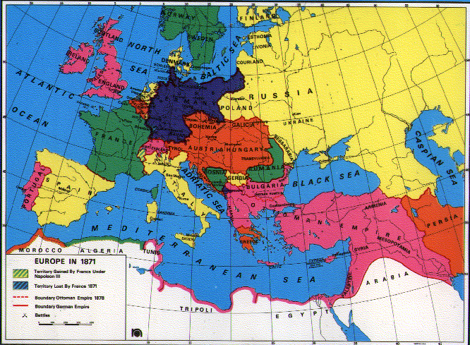 Al comenzar, pues, el último tercio del siglo XIX, el mapa de Europa estaba compuesto por una serie de estados-nación más o menos consolidados, tanto internamente como en sus fronteras, que daban respuesta a la mayor parte de las aspiraciones nacionalistas de la época. No obstante, existían una serie de focos de tensión y conflicto muy importantes en tres territorios en los que confluían fuertes reivindicaciones nacionalistas y proyectos imperialistas de gran alcance: