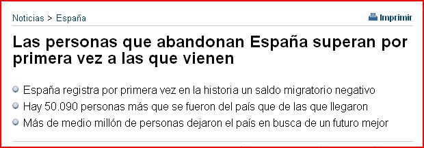 España dejaba de ser, a partir de ese mismo instante, un país atractivo para inmigrantes. Y solo era cuestión de tiempo empezar a ver cómo trabajadores españoles cualificados en paro empezarían a hacer las maletas para marcharse a países con una estructura económica más sólida en busca de trabajo.