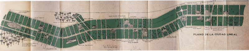 c) Los barrios o «ciudades» jardín, se concibieron en principio como zonas de residencia obrera y de clase media, a partir de un urbanismo «utópico» que quería recrear la vida en la naturaleza con el objetivo de buscar la felicidad de los residentes.En España hubo varias experiencias en distintas ciudades que tuvieron un éxito desigual, pero el ejemplo más desarrollado fue el de la Ciudad Lineal de Arturo Soria, en Madrid, que se articulaba en torno a una gran calle que contenía todos los servicios básicos, flanqueada por manzanas formadas por casas unifamiliares. Aunque la idea era rodear toda la periferia madrileña, sólo llegó a construirse el sector noreste. Actualmente, debido a la integración en el casco urbano de Madrid y la revalorización del suelo, las casas unifamiliares han ido siendo sustituidas por construcciones en altura y zonas comerciales.