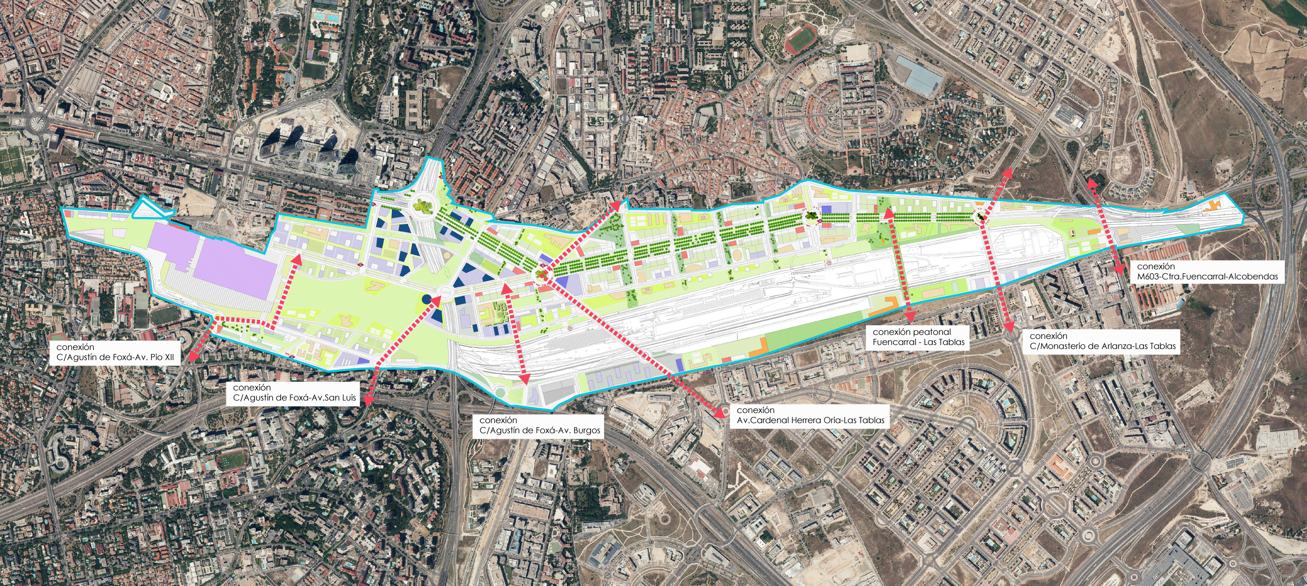 Posteriormente, a mediados del siglo XX, durante la dictadura franquista, se pusieron en marcha los planes de ordenación urbana impulsados por el estado. Se aplicaban sobre el conjunto de la ciudad y dividían a ésta en zonas a las que se asignaba una función concreta. En la actualidad, la planificación y el ordenamiento del espacio urbano se ha descentralizado: las autonomías tienen las competencias exclusivas en ese campo, y los municipios realizan el planeamiento urbano, de acuerdo con la legislación. Utilizan para ello, instrumentos como los planes generales, que regulan y ordenan, para períodos de tiempo determinados, tanto los usos del suelo y la edificabilidad, como las infraestructuras y la protección medioambiental; los planes parciales, para áreas concretas; y los planes especiales, que suelen centrarse en la solución o la prevención de problemas concretos en distintas áreas de la ciudad, tales como la degradación de centros históricos o el aumento de la demanda de nuevas áreas comerciales, residenciales, etc. (en la imagen, el plan Castellana Norte, en Madrid, actualmente en proyecto)