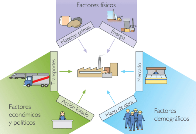 Los factores de localización industrial, es decir, el conjunto de ventajas que favorecen el desarrollo de las actividades industriales en determinadas áreas, han variado con el tiempo y el desarrollo tecnológico. Así, algunos factores tradicionales clave, como la cercanía a las materias primas o a los mercados, hoy se han visto reemplazados por el acceso a la tecnología y a los grandes nudos de comunicaciones.