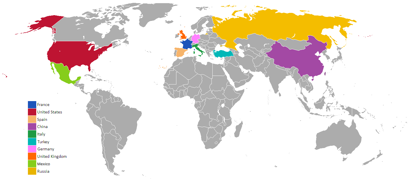 Los principales destinos turísticos del mundo son Francia, EE.UU. España, China e Italia, países que superan los 50 millones de visitantes al año y que acumularon más de un tercio de todo el turismo mundial durante el año pasado.