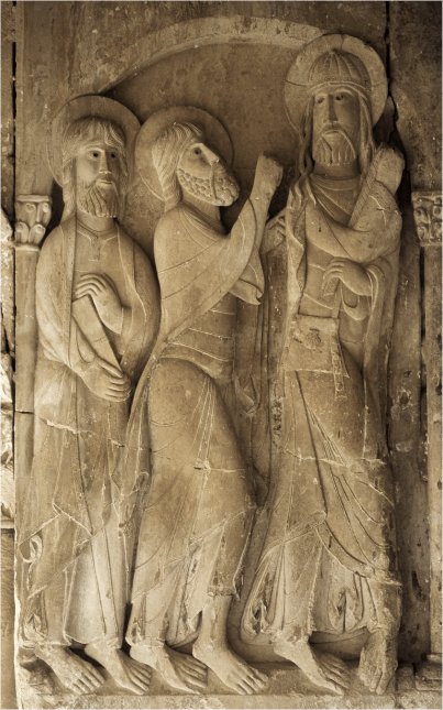 Relieve de los discípulos de Emaús en el Claustro del Monasterio de Santo Domingo de Silos. Románico, s XII.